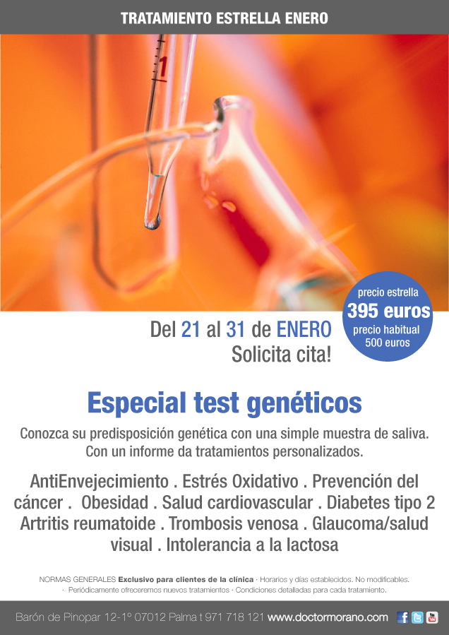 Conozca su predisposición genética con una simple muestra de saliva. Con un informe da tratamientos personalizados.