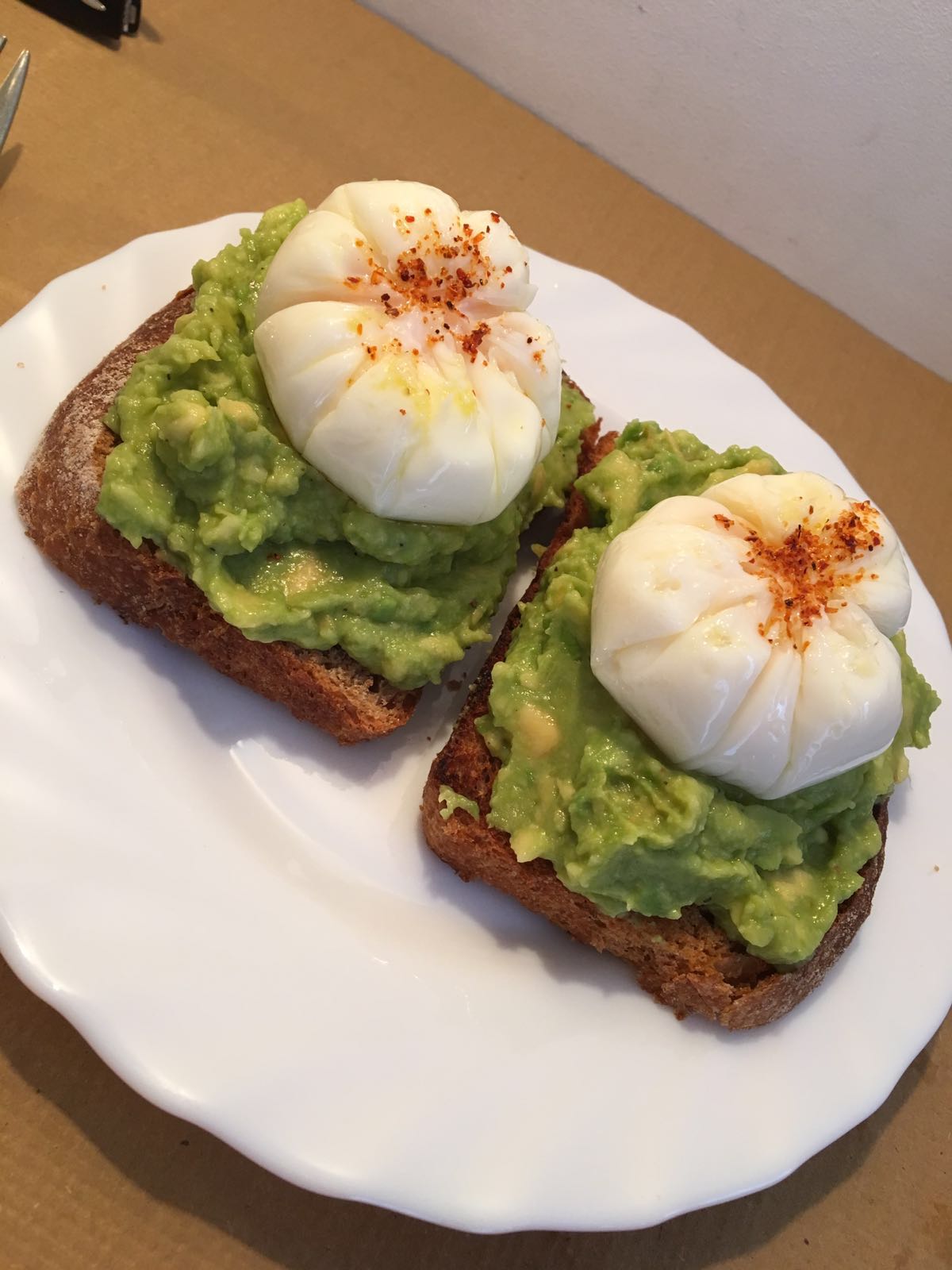 Tostadas de aguacate con huevos poché.